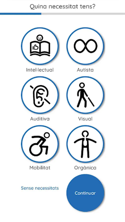 Selection of profiles: the mobile application offers the possibility of accessing information on Park Güell resources through six profiles, according to needs: cognitive (intellectual and autistic), sensory (visual and auditory) and physical ( mobility and organic). In addition, it offers a combination of nine of these profiles in case the user has several needs.