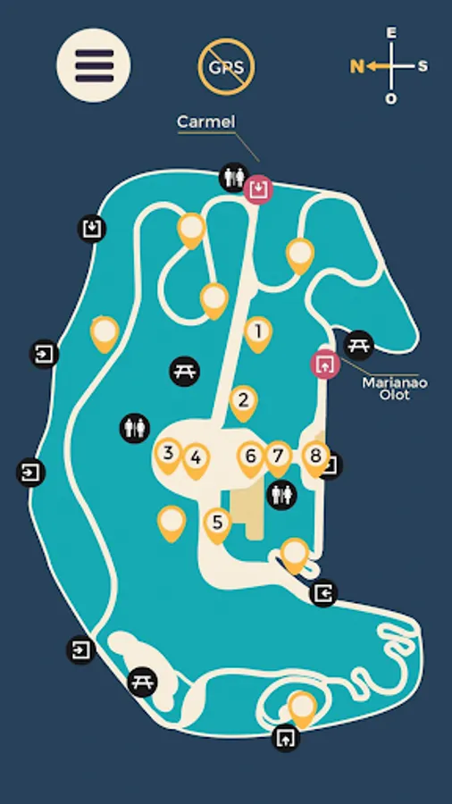 Digital maps: once the profile is selected, the user accesses a personalized digital map, without GPS, which allows him to identify where the park's nine main resources, the six complementary resources, the three services, the nine accesses, the three picnic areas and the three calm spaces. The maps are adapted for people with intellectual diversity and may also include an accessible route for people with reduced mobility or adapted colors for people with certain visual needs.