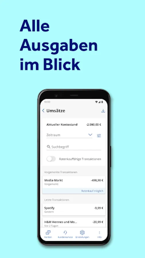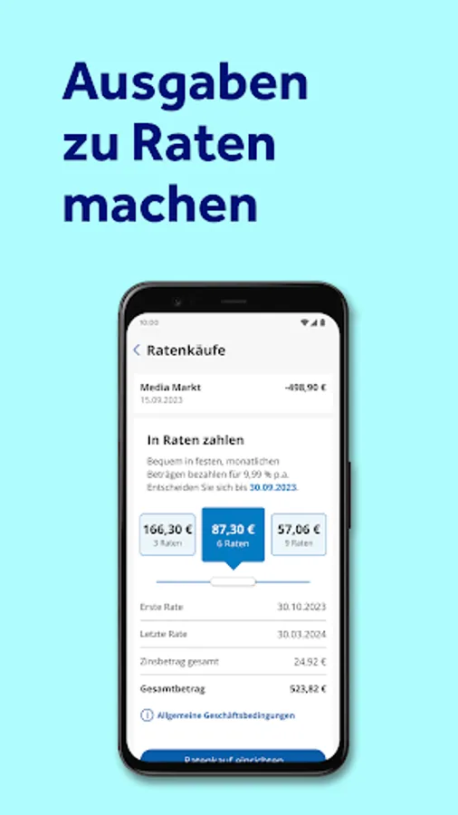- Set up installment purchase: You can use the app to set up an installment purchase for individual expenses from €95 or the entire monthly bill – even up to 8 weeks later.