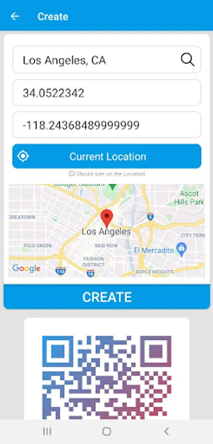 QR Code and Barcode Scanner app also support the functionality of a QR code generator. Using QR generator is extremely easy to use, just enter the data by selecting the appropriate code type and hit the create button to generate the code.