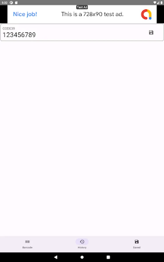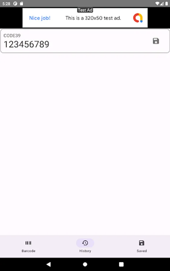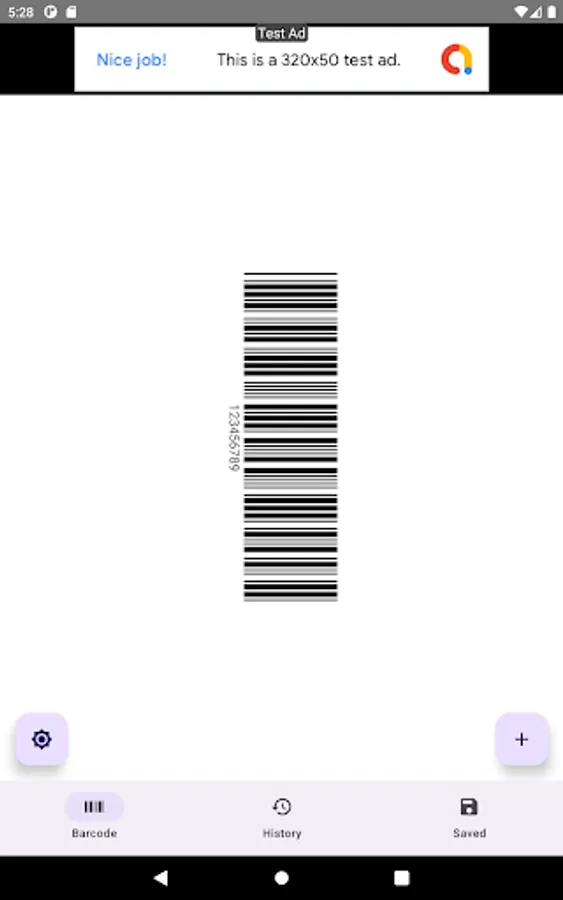 Display the barcode on the screen.