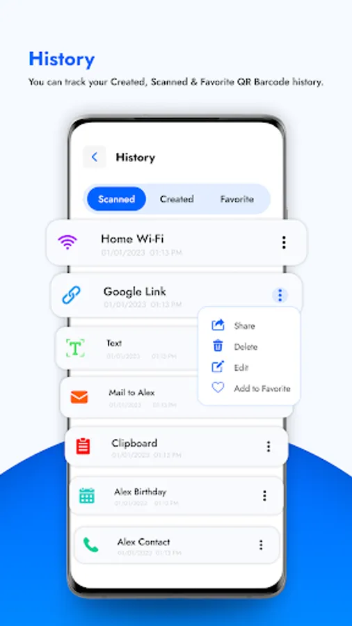 You can easily manage generated barcodes and QR codes. Because this QR scanner saves all QR in local storage. So you can use QR codes anytime and anywhere without the internet.