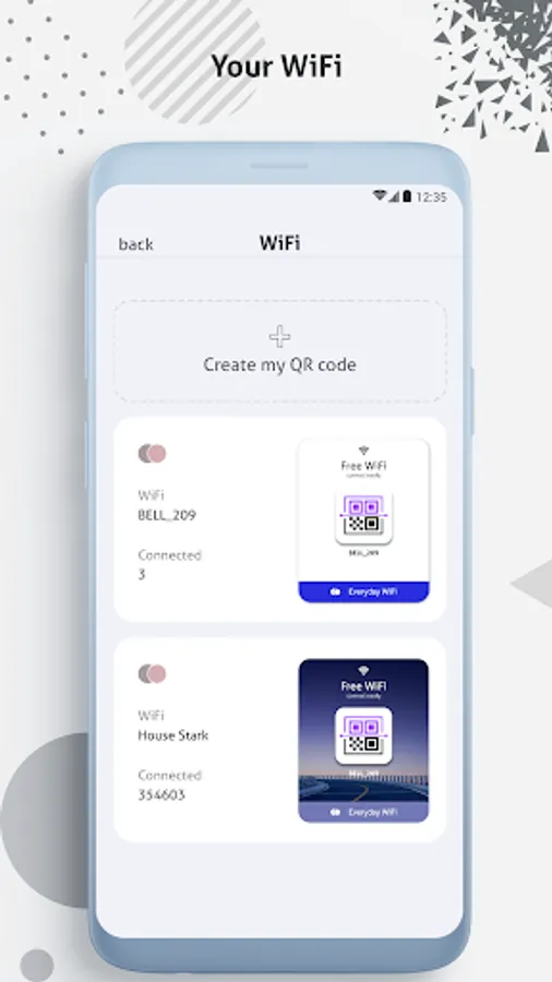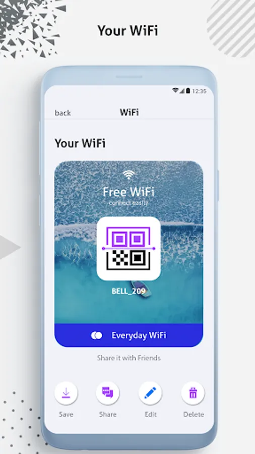 WiFi QR Code Generator - WiFi QR Code Scanner allows the user to connect easily to a WiFi network by scanning or create a QR code. The user can just aim your rear camera of your device to the QR code & automatically the app will try to connect to the scanned network.