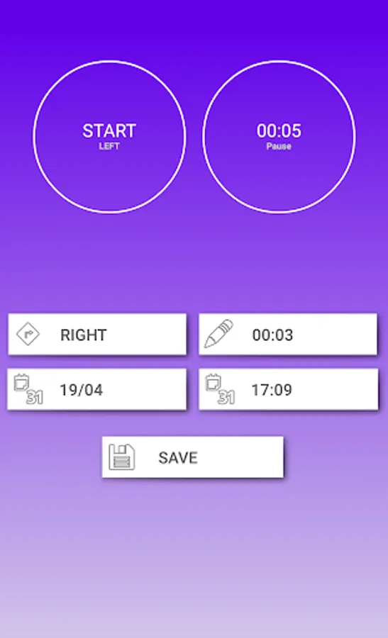 * Tracks time nursing per breast and total for daily full nursing session and pumping
