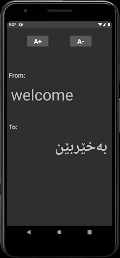 A 'Kurdish to English' and 'English to Kurdish' dictionary with a modern user interface. This dictionary is easy and simple to use and navigate around.