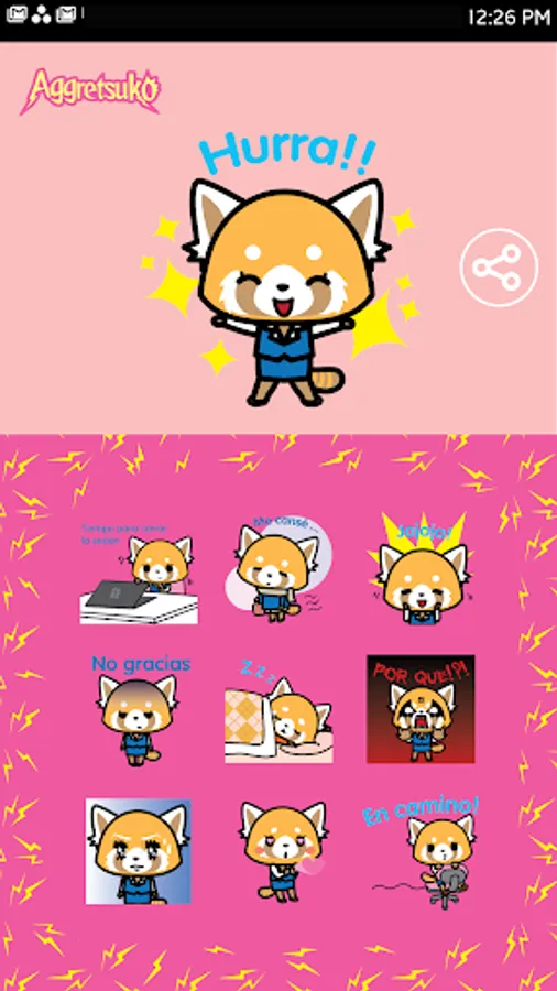 ¡Libera tus sentimientos con estos divertidos stickers de Aggretsuko! Este paquete de Stickers presenta el lado tierno y dulce de Retsuko, pero también la versión de Retsuko que no tiene miedo de liberar todo su estrés cantando en el karaokê. El paquete contiene 30 stickers estáticos.