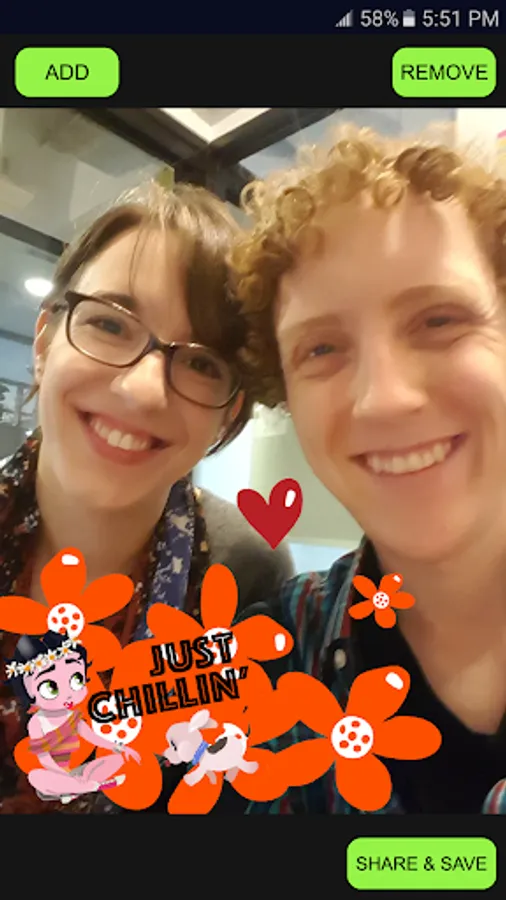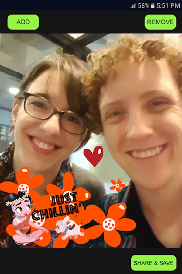 • Edit photos by adding numerous stickers, resizing, repositioning to share with friends
