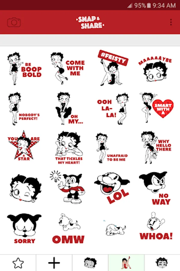 Looking to add a little Boop-Oop-a-Doop™ to your life? Well, now is your chance, and it’s FREE! Download the new Betty Boop Snap & Share App to unlock multiple messaging sticker packs and Betty’s Photobomb application while gaining access to all there is to know about the glamourous international icon who has sung and stylishly sashayed past rules and conventions for over 80 years! Best of all, this App is available as a FREE download!