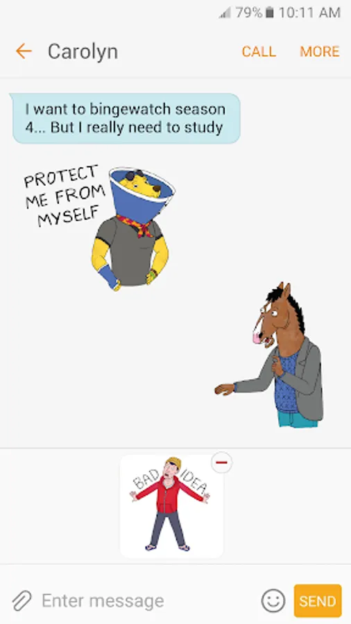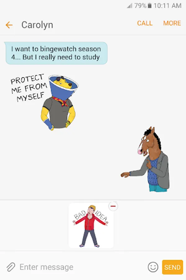 If you are a fan of BoJack Horseman on NETFLIX, you must download the BoJack HorseApp. It is FREE to download and includes tons of stickers for horsin’ around.