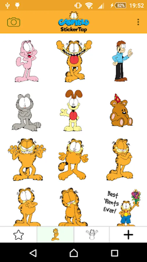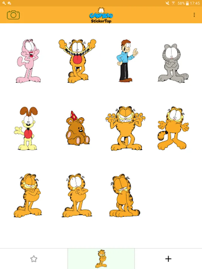 Welcome to Garfield StickerTap, the official Garfield app for sending messages and sharing photos featuring Garfield and his friends. Garfield StickerTap combines the functions of a sticker app and photo app into a single app. Best of all the app is available as a FREE download! Who doesn't love FREE stuff?