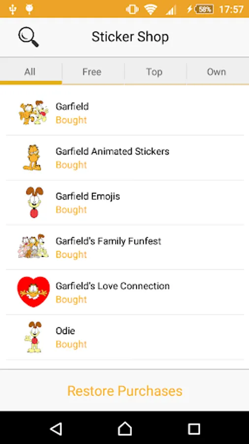 Garfield StickerTap is available as a FREE download, offers FREE content to start you off, and provides options to purchase additional Garfield content at your leisure. Browse the in-app sticker marketplace often for new and ongoing content introductions. Tap some fun into your conversations and photos with Garfield StickerTap.