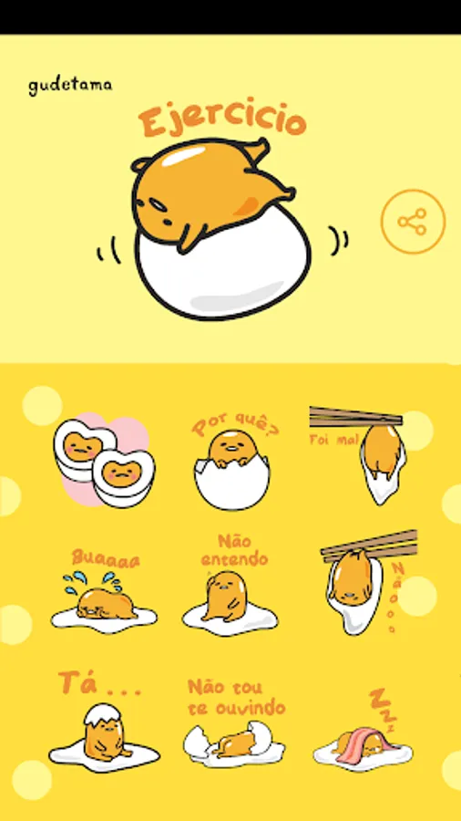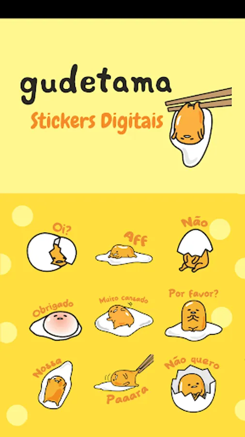 Está com muita preguiça de escrever suas mensagens? gudetama te ajuda a transmitir seus sentimentos! São diversos stickers fofos e descontraídos, perfeitos para quem se identifica esse ovo super preguiçoso. O pacote inclui 30 stickers estáticos.