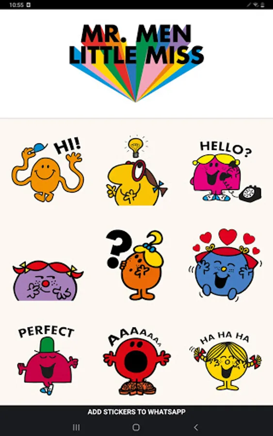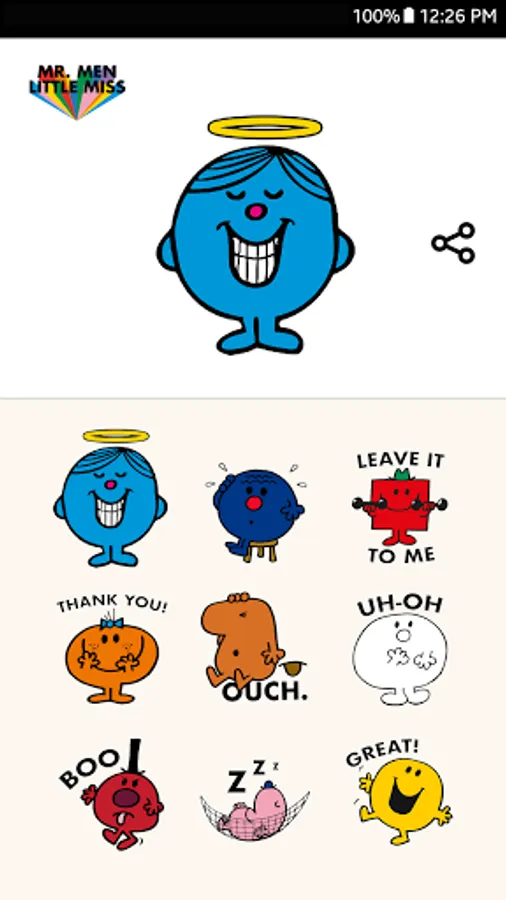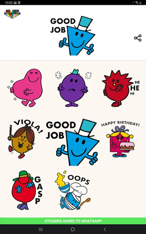 The iconic Misterland characters you know and love are now in digital sticker form! This colorful cast will add playfulness and fun to your messaging conversations. Discover the Mr. Men or Little Miss that best represents YOU! Pack includes 32 static stickers.