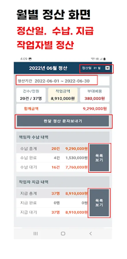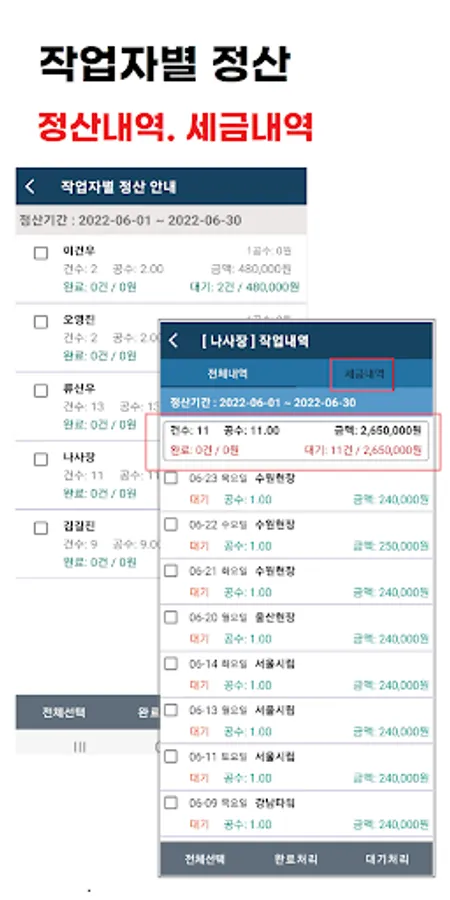 It is an app for technical and daily workers, and provides various functions such as settlement and tax calculation for each worker.