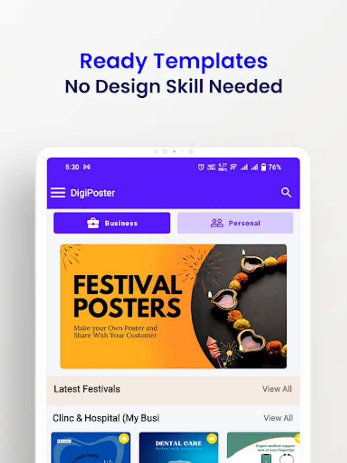 This festive season, DigiPoster brings you an array of captivating features and tools to elevate your celebrations. Discover an abundance of Happy Ramzan 2023 posts, banners, posters, flyers, images, videos, wishes, and more, all conveniently available in one app. With DigiPoster, unleash your creativity and effortlessly create stunning designs for Ramzan, with readymade design templates.