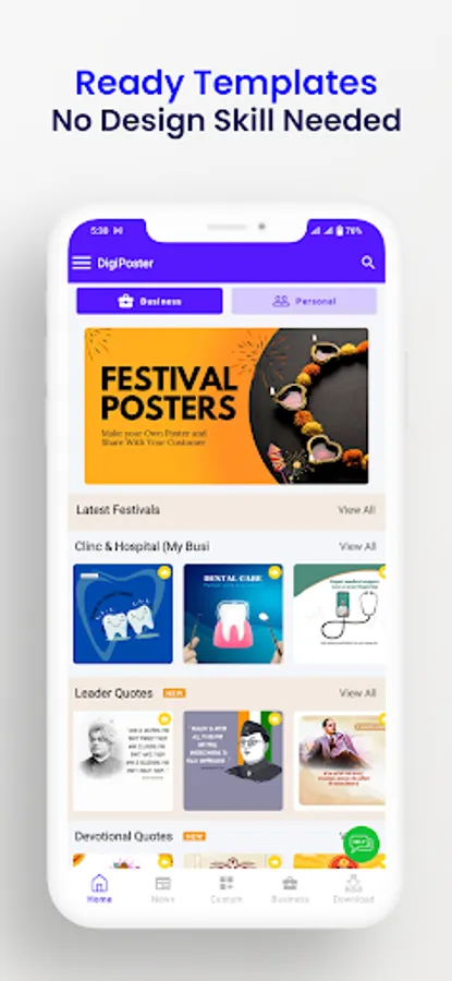 DigiPoster is a versatile app designed to revolutionize your business branding effortlessly. With its comprehensive suite of features, DigiPoster empowers you to automate your branding efforts for 365 days, providing a complete 360-degree branding solution.