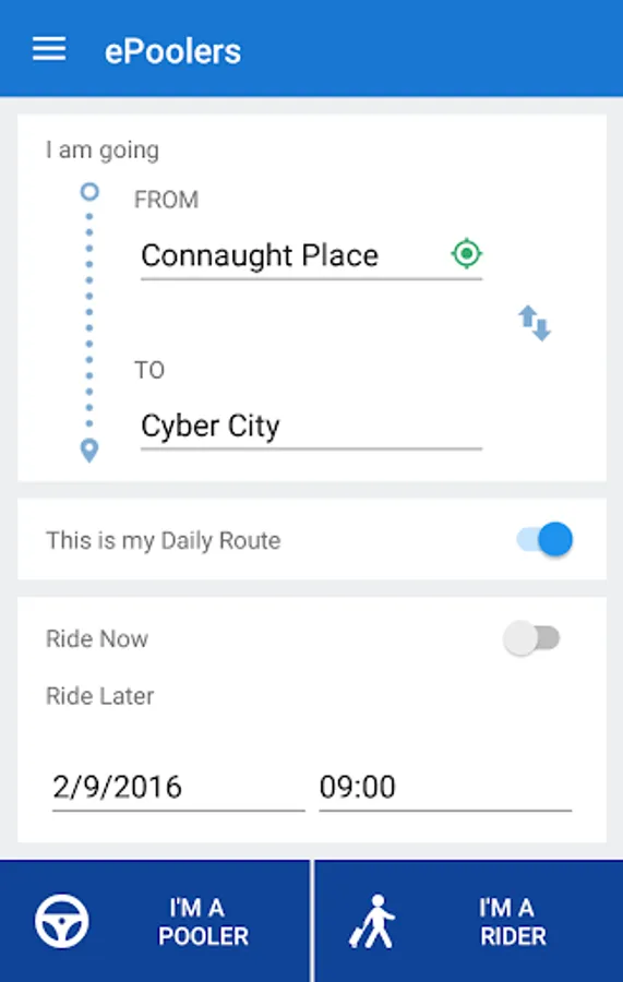 Use ePoolers mobile app to find out daily carpools & bikepools near your location. It will enable you to do your bit in controlling pollution & traffic congestion, saving environment by reducing your carbon footprint and save your wallet money as well.