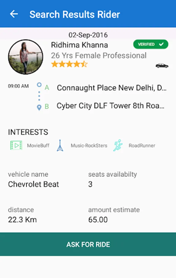 Verify profile of the person who is offering ride