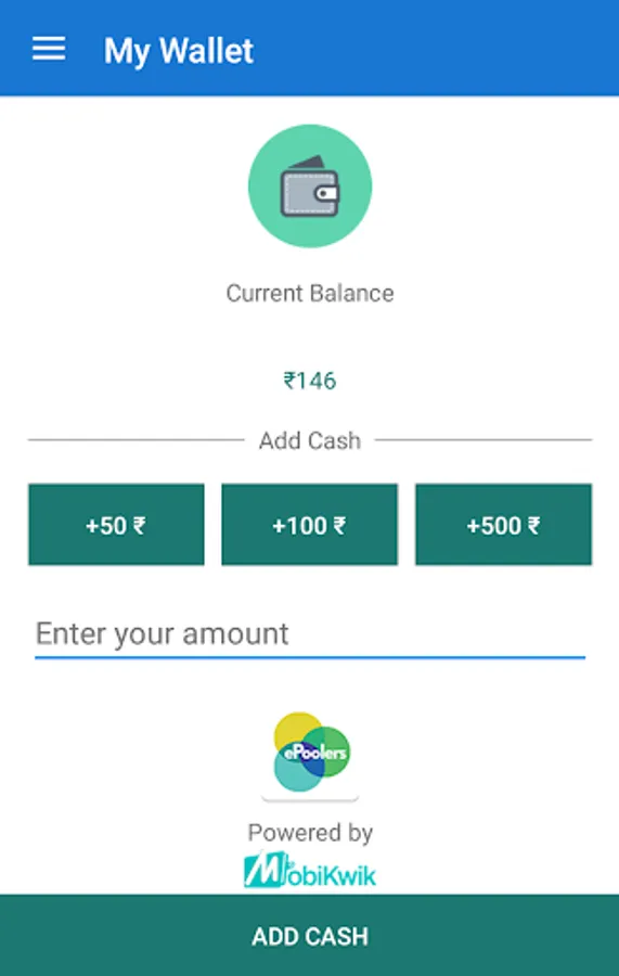 Use ePoolers wallet (powered by Mobikwik) to pay and receive money