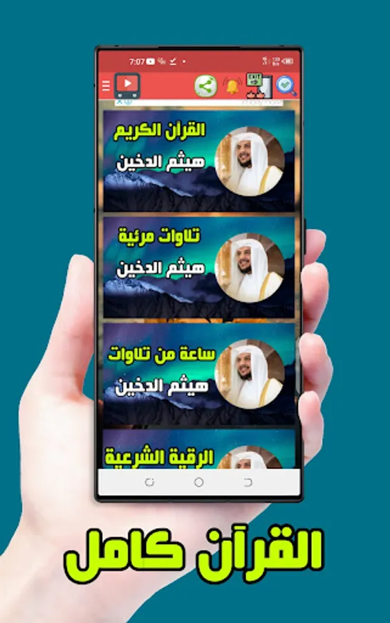 "The Hatham Al-Dukhein Quran application is a unique application that includes recitations, paper copies, and supplications in the voice of the famous reciter Hatham Al-Dukhein. The application aims to help users listen to and recite the Quran and supplications with the beautiful voice of Hatham Al-Dukhein and learn about multiple supplications and adhkar in his voice.