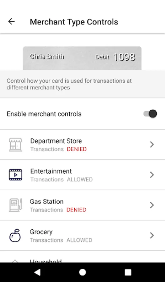 • Control other cards associated with the account – If you have multiple cards, you can set controls for all associated cards.