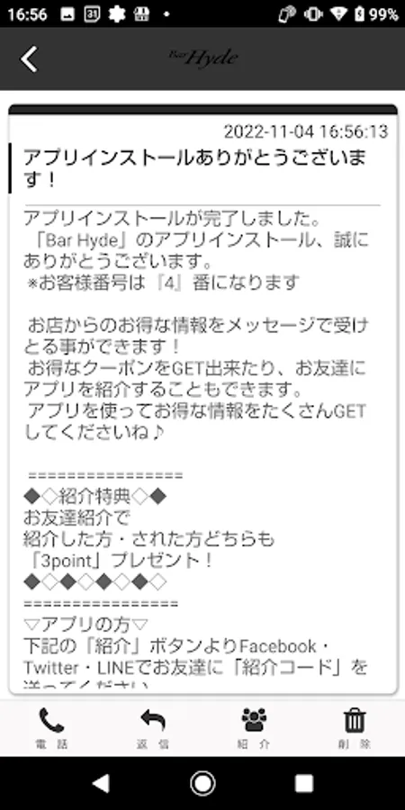 You can introduce BarHyde app to your friends through SNS.