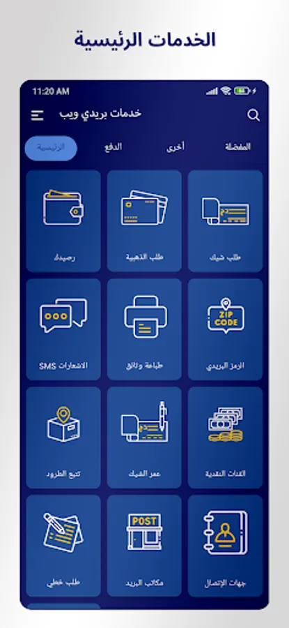 Access your postal information through the web window and view your balance. Through the application, you can also request checks and a gold card.