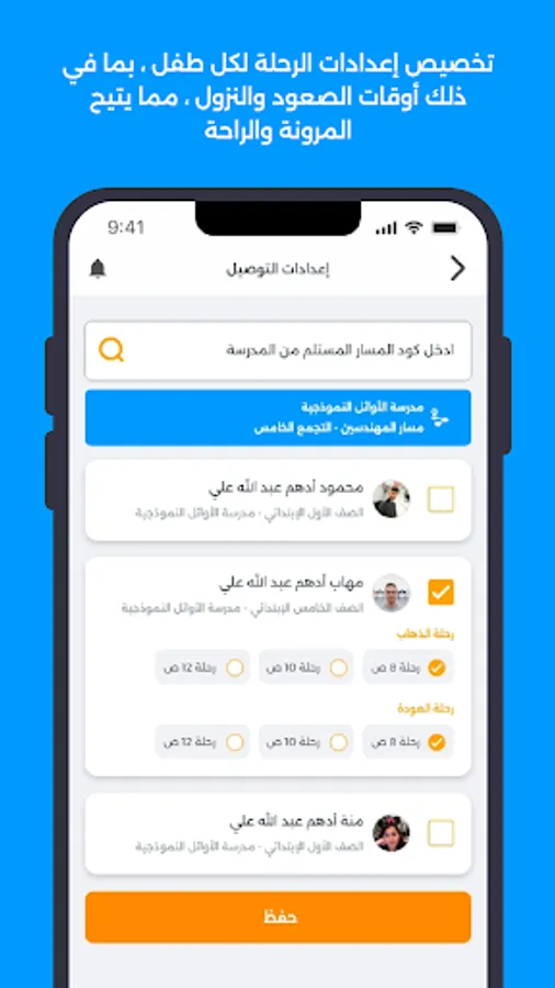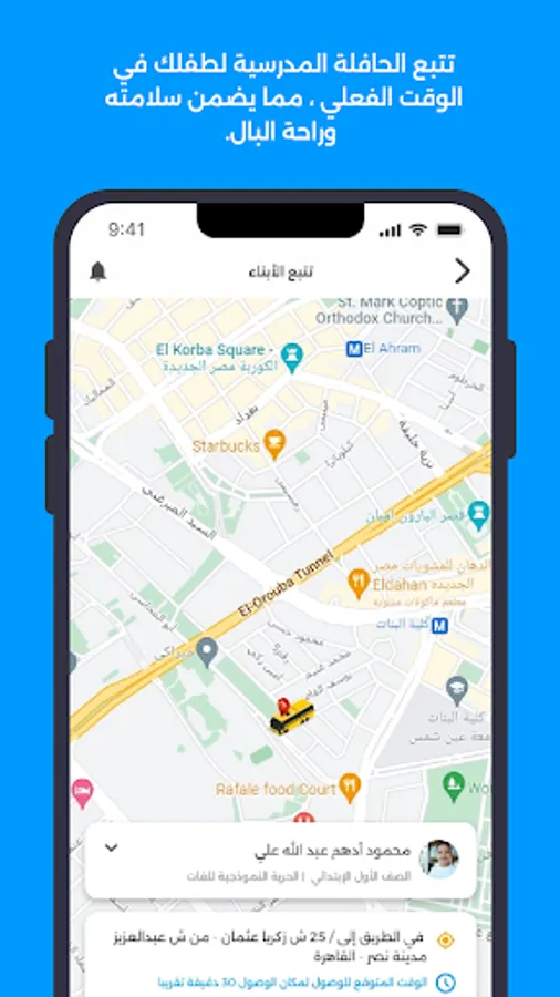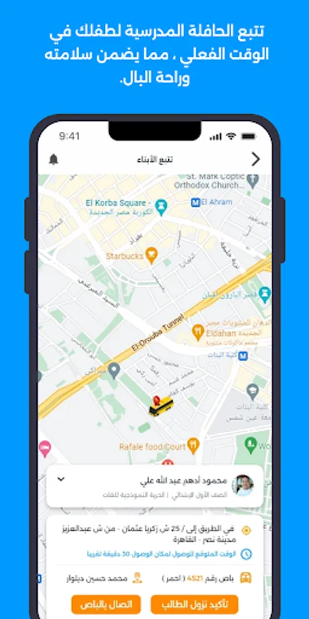 The driver/supervisor app alerts parents of the approaching school bus, allowing them to prepare for pick-up. It simplifies tracking of absent students and facilitates student handover based on bus attendance.