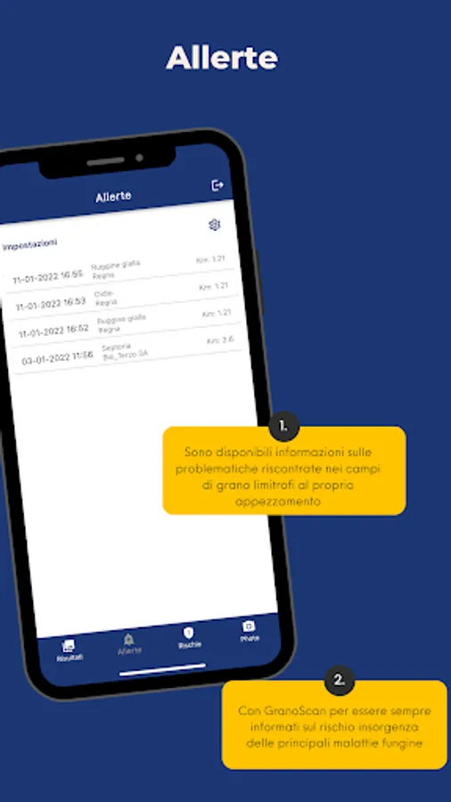 In the alert session you will find information on the problems encountered in the wheat fields adjacent to yours. The number of alerts you wish to receive can be selected from a convenient menu.