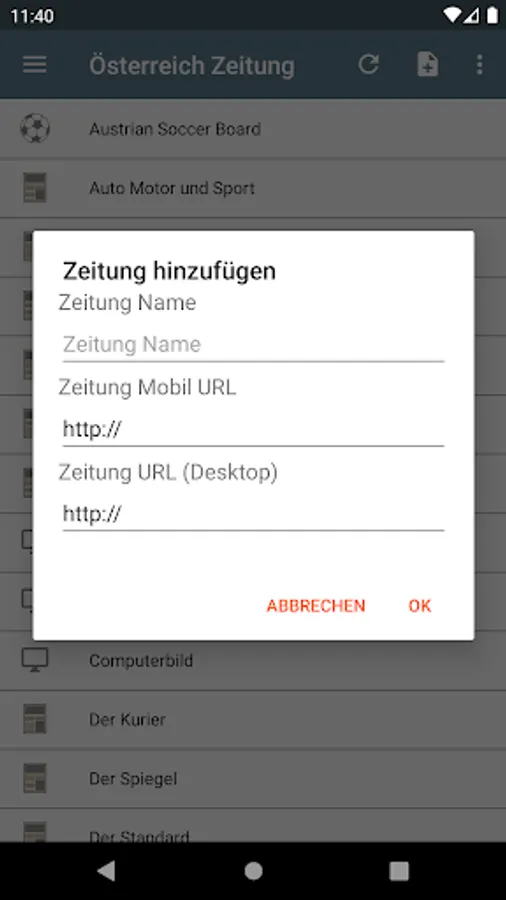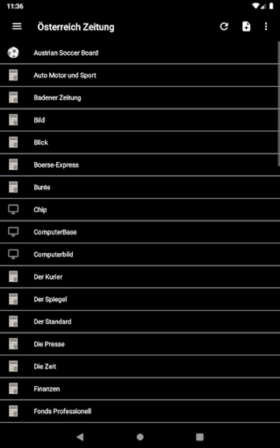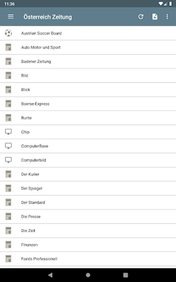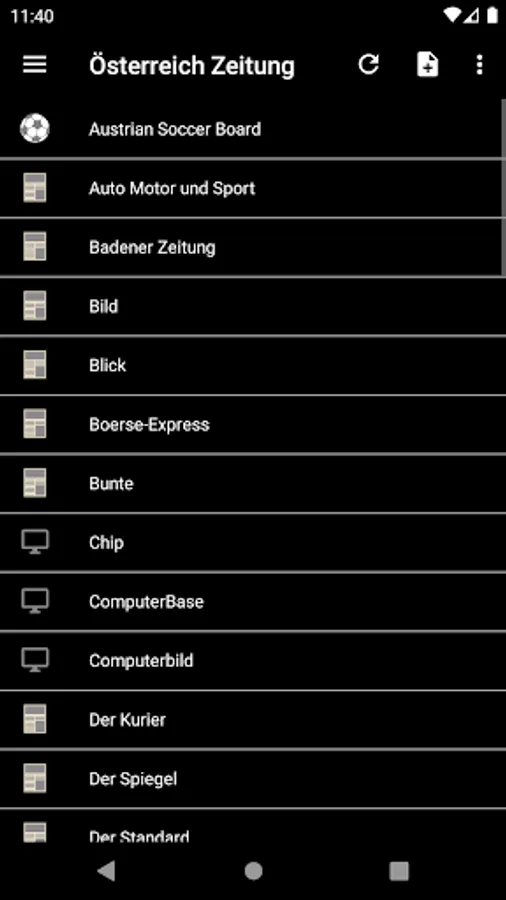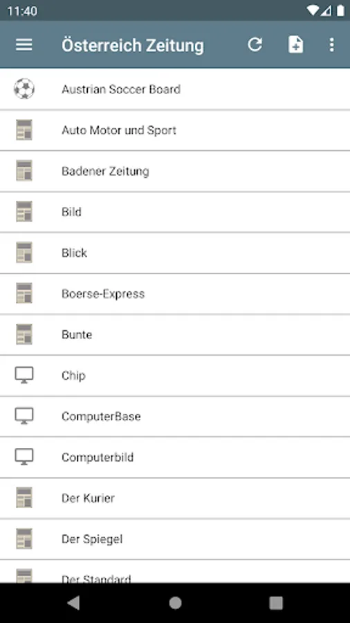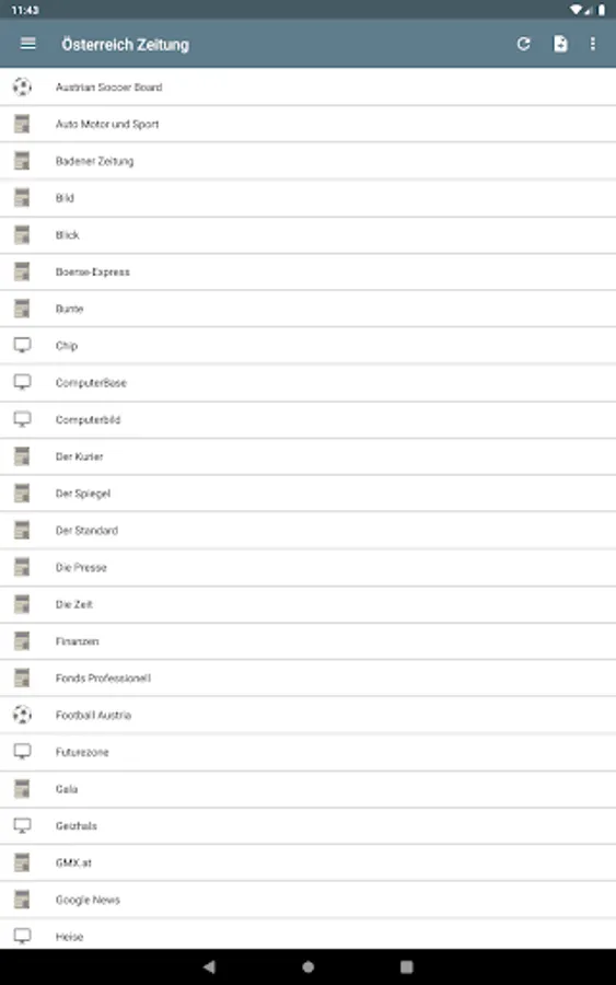 Read major Austria newspapers, news sites online. You can find news from Badener Zeitung, Boerse-Express, Chip, Computerbild, Der Kurier, Der Standard, Die Presse, Fonds Professionell, Football Austria, Format, Geizhals, GMX.at, Google News, Heute, Heise, KathWeb, Kleine Zeitung, Kronen Zeitung, Laola1, News.at, ORF, Oberösterreichische, Österreich OE24, Profil, Salzburg24, Salzburger Nachrichten, Sportnet, The Local, Tiroler Tageszeitung, VOL, Wetter.at, Wiener Zeitung, WirtschaftsBlatt...
