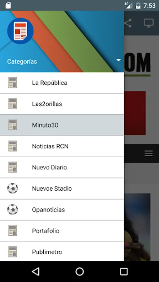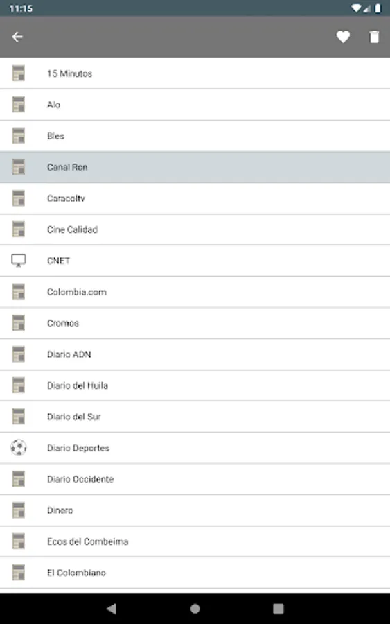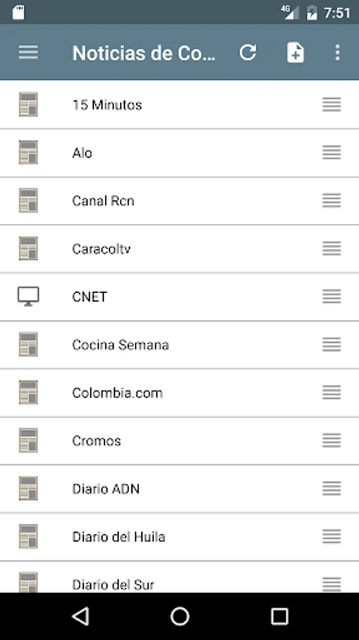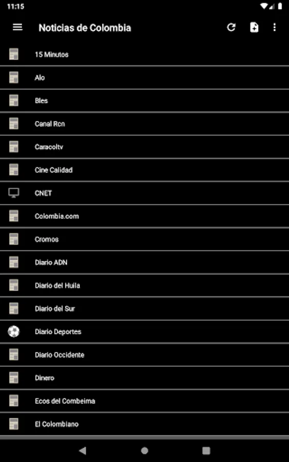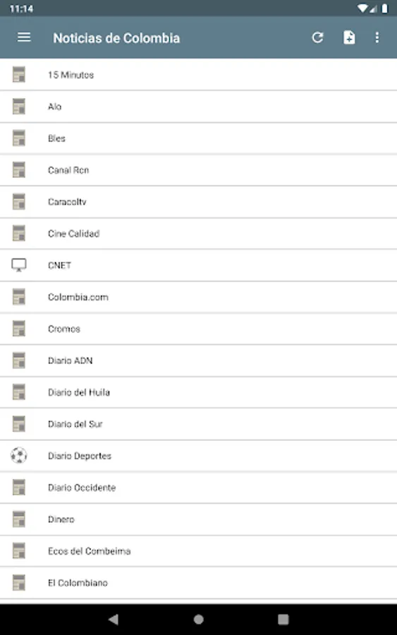 Puedes encontrar noticias de 15 Minutos, Alo, Canal Rcn, Caracoltv, CNET, Cocina Semana, Colombia.com, Cromos, Diario ADN, Diario Occidente, Diario del Huila, Diario del Sur, Diario Deportes, Dinero, Ecos del Combeima, El Diario de Otún, El Colombiano, El Deportivo, El Espectador, El Frente, El Heraldo, El Meridiano de Córdoba, El Mundo, El Nuevo Día, El Nuevo Siglo, El Pais, El Pílon, El Tiempo, El Universal Colombia, Engadget, Enter, Finanzas Personales, Futbolete, Futbolred, Gizmodo, Gol Caracol, Google News Colombia, HOY Diario del Magdalena, HSB Noticias, Jetset, La Crónica del Quindío, La Nación, La Opinión, La Patria, La República, Las2orillas, La Libertad, Minuto30, Nuevo Diario, Noticias RCN, Nuevoe Stadio, Opanoticias, Portafolio, Publimetro, Pulzo, Semana, Tutiempo, Vanguardia, W Radio, Yahoo Colombia Noticias, Zona Cero...