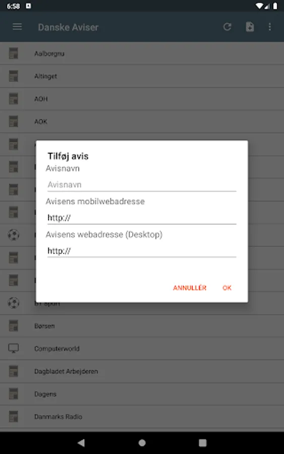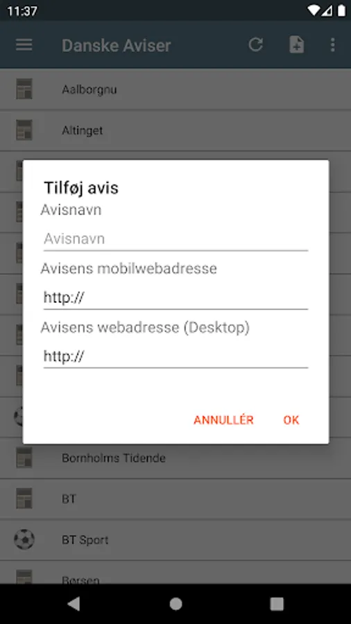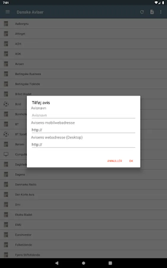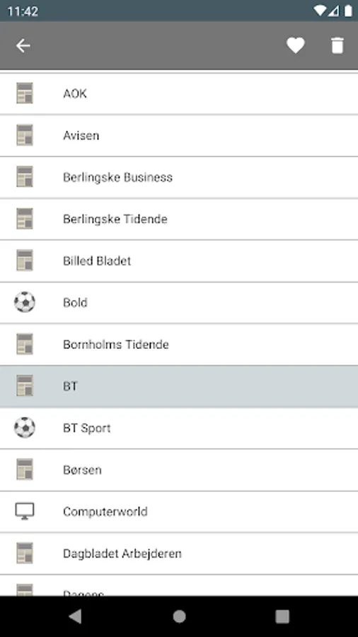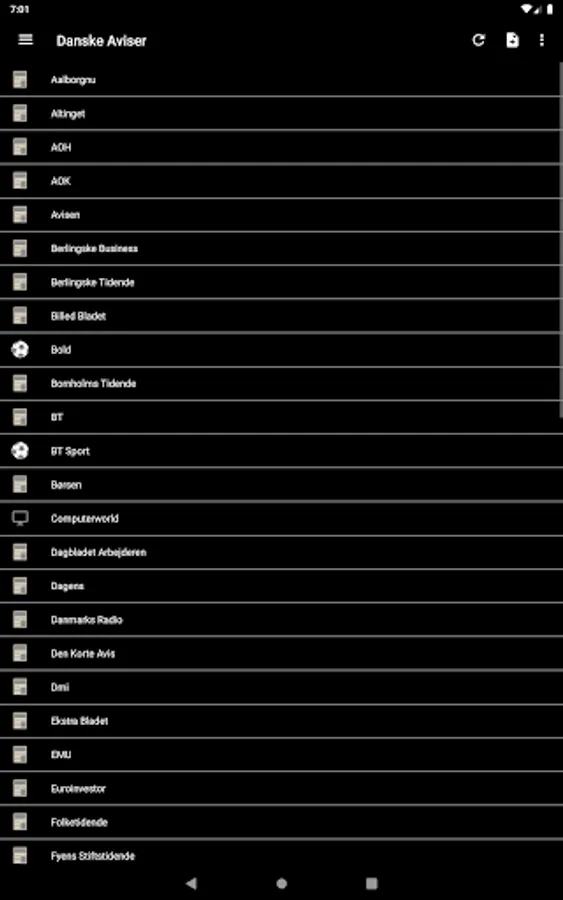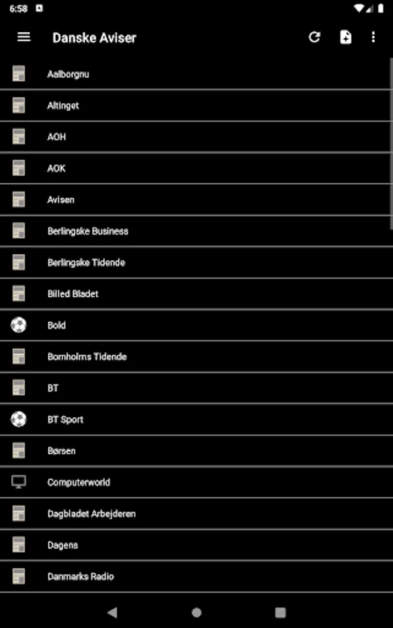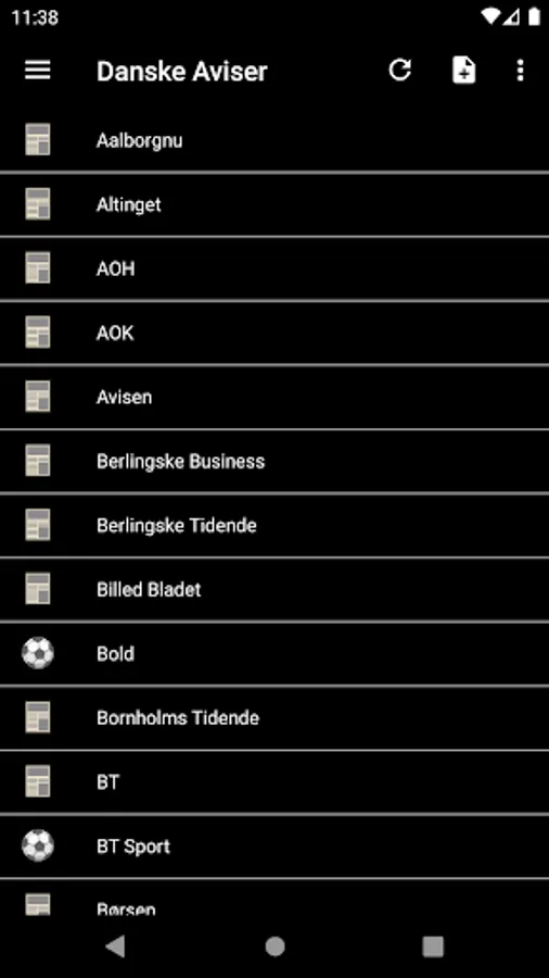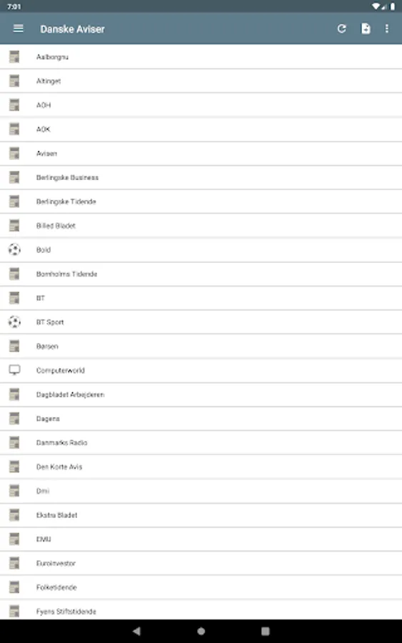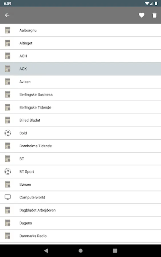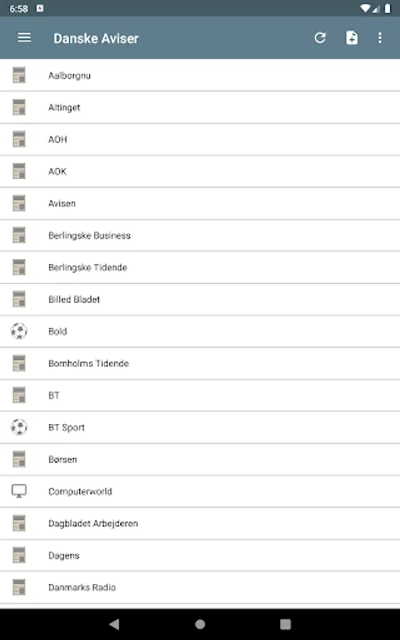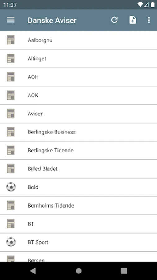 Read any newspaper from the Denmark! National and regional newspapers. You can find news fromAOH, AOK, Århus Stiftstidende, Avisen, BT, BT Sport, Berlingske Tidende, Berlingske Business, Billed Bladet, Bold, Børsen, Computerworld, Dagbladet Arbejderen, Dagens, Den Korte Avis, Danmarks Radio, Dmi, Ekstra Bladet, EMU, Euroinvestor, Folketidende, Fyens Stiftstidende, Gaffa, Horsens Folkeblad, Indkast, Information, Ingeniøren, Jydske Vestkysten, Jyllands-Posten, Kristeligt Dagblad, Landbrugsavisen, MereMobil, Metroxpress, Midtvestavis, MJA, Mobilsiden, News Market, Nordjyske, Politiken, Recordere, SE og HØR, Sjællands Nyheder, Søndagsavisen, The Copenhagen Post, Bornholms Tidende, Tipsbladet, Version2, Videnskab, Weekendavisen...