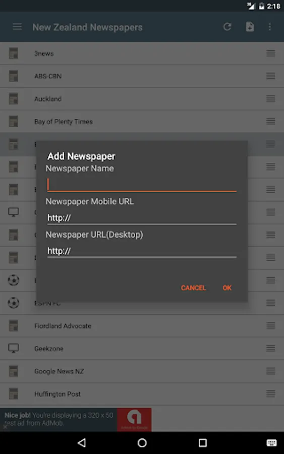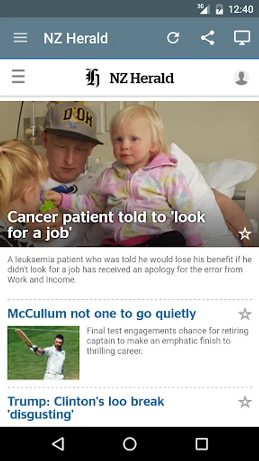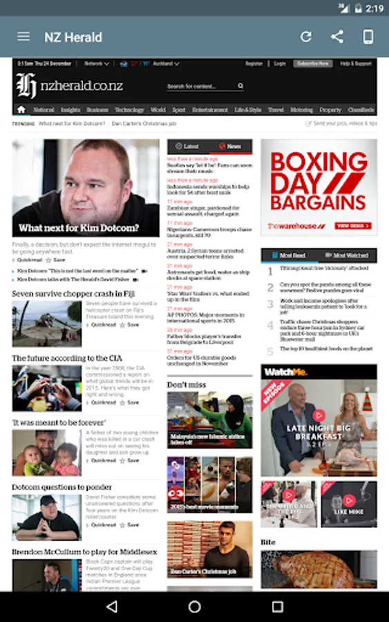 Read any newspaper from the New Zealand! National and regional newspapers! You can find news from 3news, ABS-CBN, Auckland, Bay of Plenty Times, BBC News, Breitbart, CNN, CNET, Business Review, Dominion Post, ESPN FC, ESPN Cricinfo, Fiordland Advocate , Geekzone, Google News NZ, Huffington Post, IFLScience, IGN, Listener, Manawatu Standard, Marlborough Express, MetService, Northern Advocate, Northland Age, NZ Herald, NZX, Otago Daily Times, Scoop, Southland Times, Stuff, Sunday News, Sunday Star Times, Taranaki Daily News, NBA, Nelson Mail; The, Press; The, Radio New Zealand, SPORT Bible; The, Wellingtonian; The, Telegraph; The, Timaru Herald, TVNZ, Wairarapa Times Age, Waikato Times, Wired, XE; The, Yahoo News...
