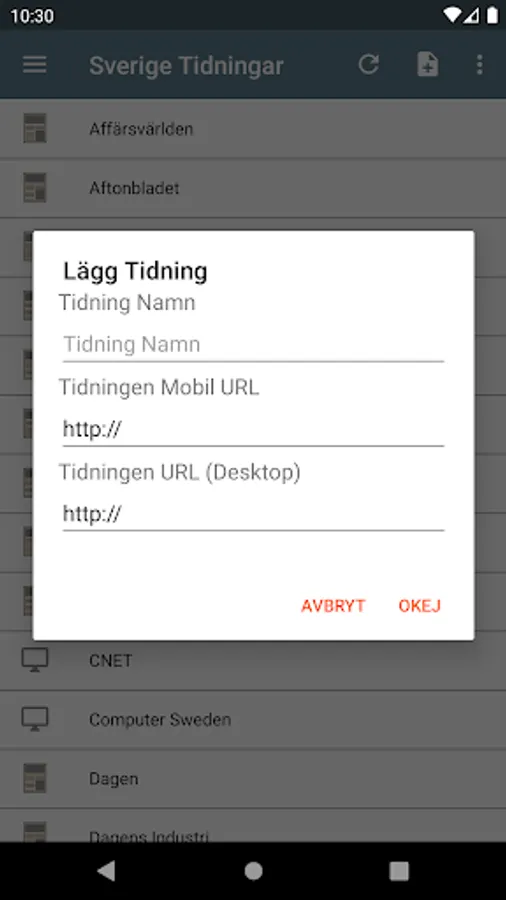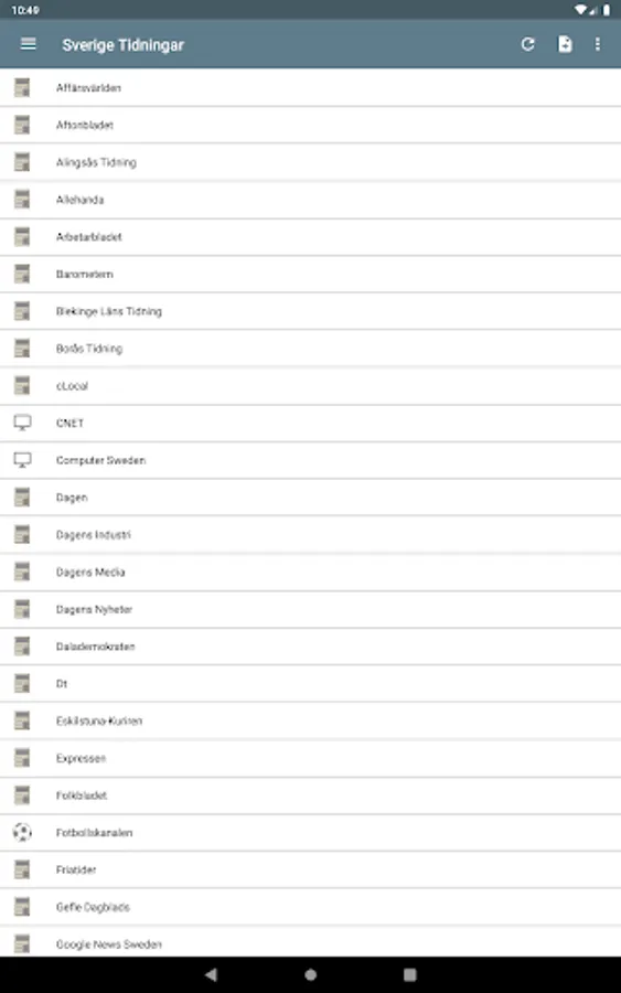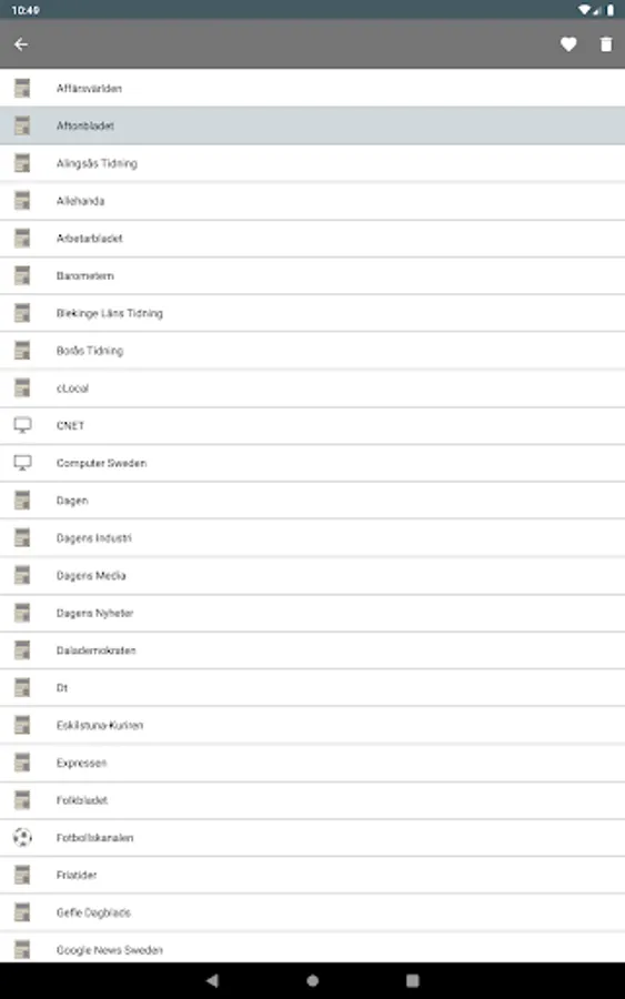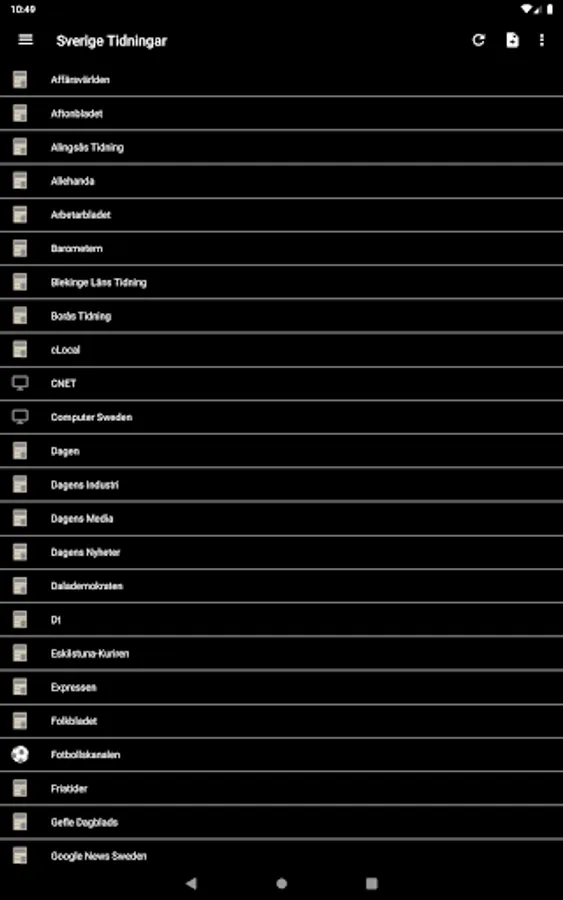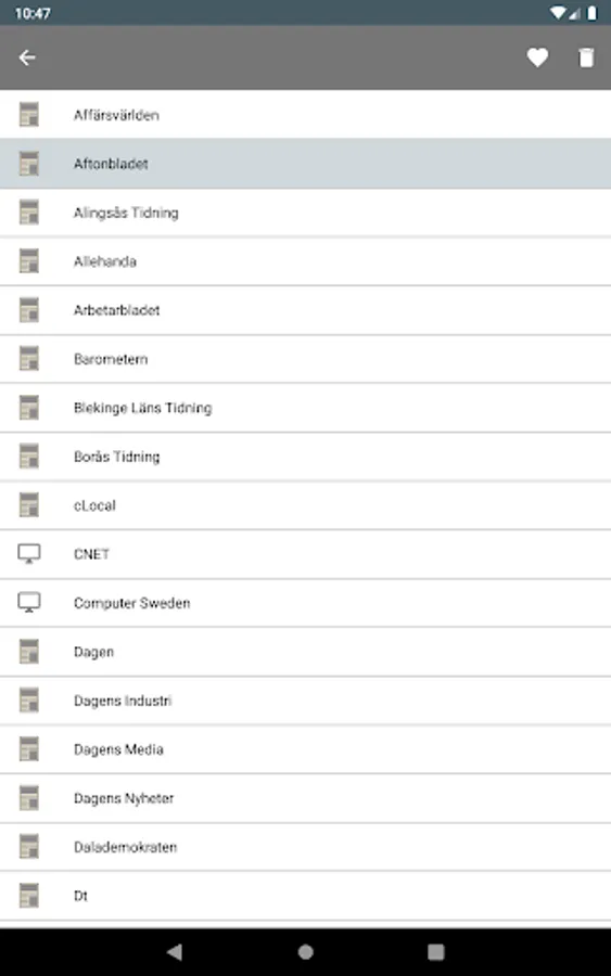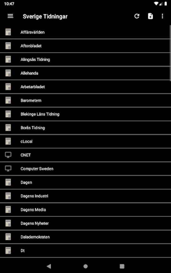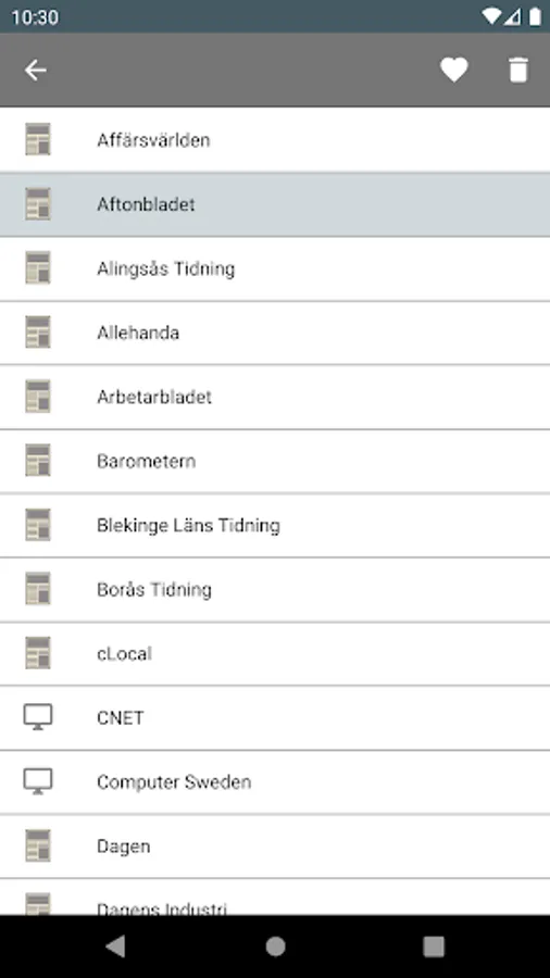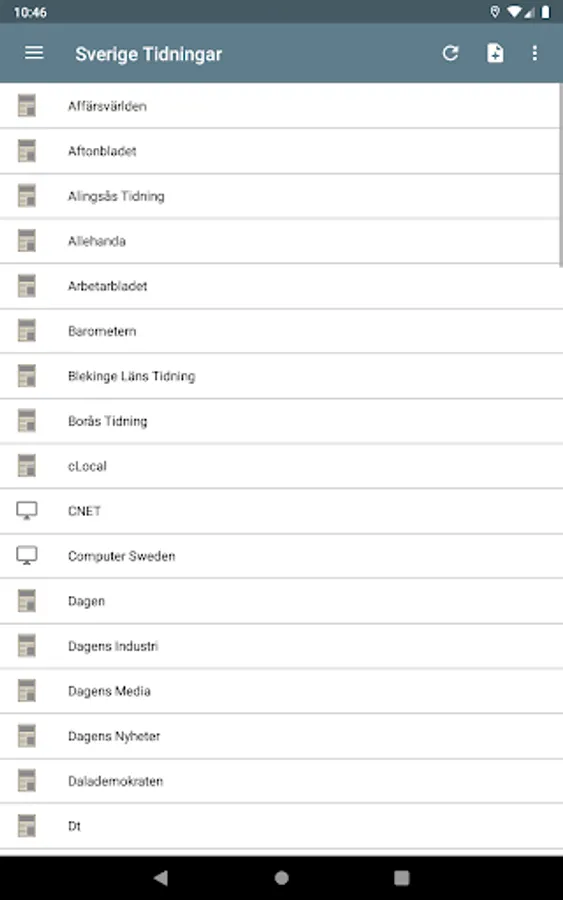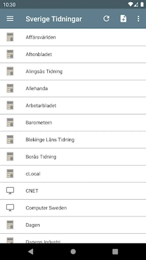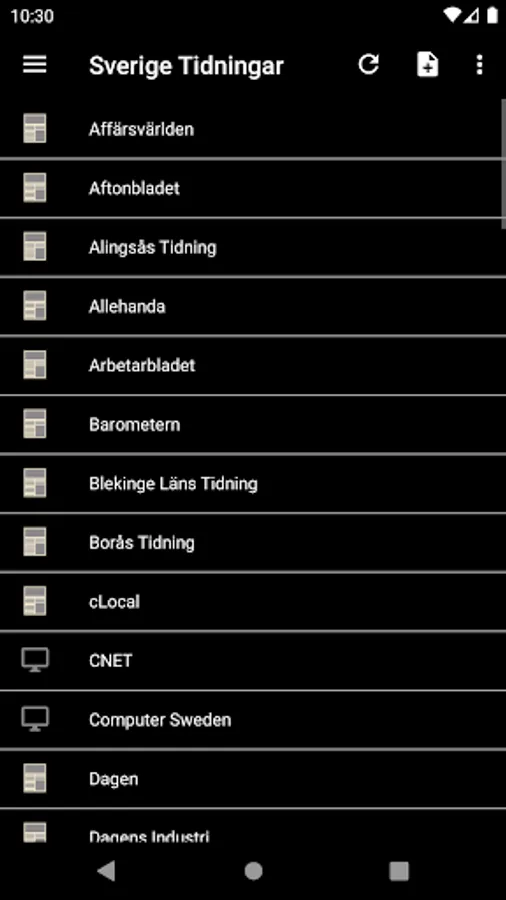 Förteckning över större svenska dagstidningar, tidskrifter, nyhetssidor på nätet. Du kan hitta nyheter från Affärsvärlden, Aftonbladet, Alingsås Tidning, Allehanda, Arbetarbladet, Barometern, Blekinge Läns Tidning, Borås Tidning, Computer Sweden, CNET, Dagen, Dagens Industri, Dagens Media, Dagens Nyheter, Dalademokraten, Di, Dt, E24, Eskilstuna-Kuriren, Expressen, Folkbladet, Fotbollskanalen, Gefle Dagblads, Google News Sweden, Göteborgs-Posten, Härryda-Posten, Helsingborgs Dagblad, IDG, Jnytt, Klart, Kristianstadsbladet, Lerums Tidning, cLocal, Metro, Mobil, Nerikes Allehanda, NewsNow Sweden, Norran, Norrköpings Tidningar, Norrländska, Nya Wermlands-Tidningen, Nyheter24, Östersunds-Posten, Östgöta Correspondenten, Partille Tidning, Piteå Tidningen, SMHI, Sport Bible, Sundsvalls Tidning, Svenska Dagbladet, SvenskaFans, SVT, Sydsvenska Dagbladet, Sweclockers, Topix Sweden, Trelleborgs Allehanda, Upsala Nya Tidning, Västerbottens-Kuriren, Västerviks-Tidningen, VLT...
