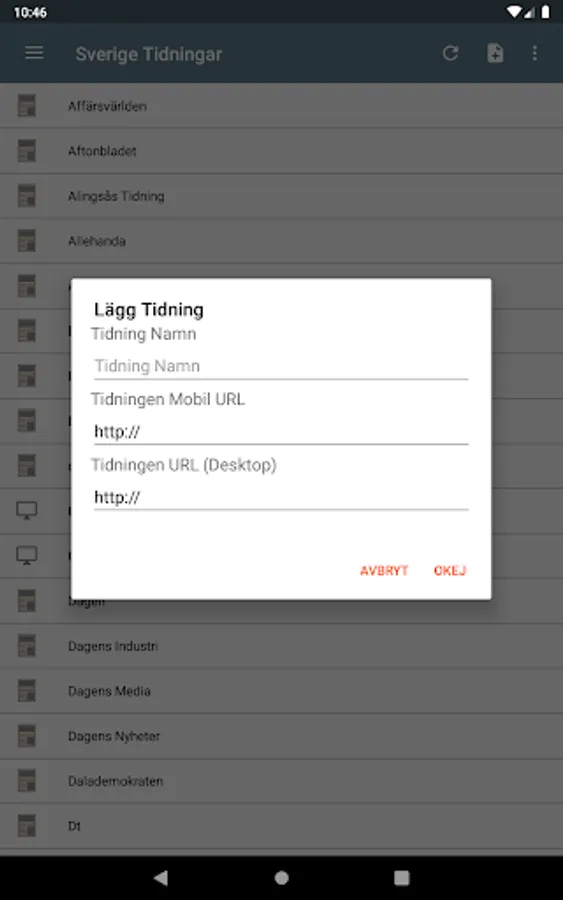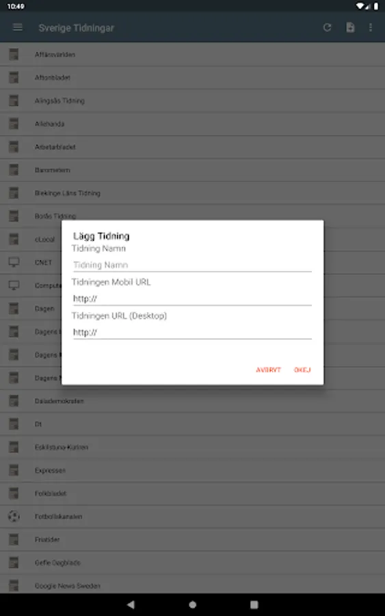 * Anpassa ordningen på tidningarna genom att använda upp och ned eller dra och släpp.