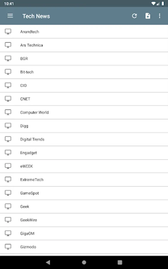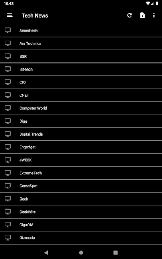 Read major news sites on gadgets, mobiles and technology with Tech News application. You can find news from Ars Technica, Bit-tech, CIO, CNET, Computer World, Digg, Digital Trends, Engadget, eWEEK, ExtremeTech, Geek, GigaOM, Gizmodo, Google Tech News, Information Week, InfoWorld, Laptop Mag, Lifehacker, Mashable, Maximum PC, MobileCrunch, PC Magazine, PC World, ReadWriteWeb, Slashdot, Steam, TechCrunch, Techmeme, TechShout, TechSpot, Tech Radar, Tech Republic, Tech Tree, Technorati, TED, The Next Web, The Register, The Verge, Toms Hardware, TUAW-Apple Weblog, Wired, ZDNet,