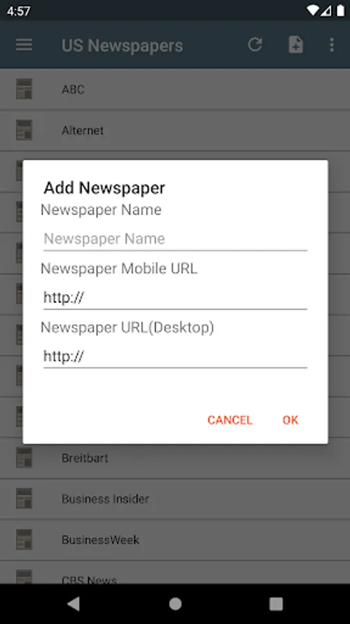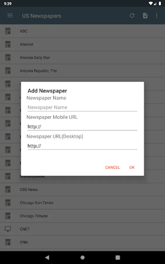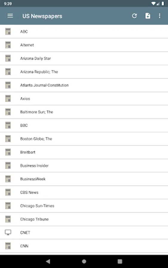 Read any newspaper from the US! National and regional newspapers. You can find news from ABC, Arizona Daily Star, Atlanta Journal-Constitution, Baltimore Sun; The, BBC , BusinessWeek, CBS News, Chicago Sun-Times, Chicago Tribune, CNET, CNN, Daily News, Denver Post, Detroit Free Press, ESPN, Financial Times, Fox News, Fox Sports, Gizmodo, Google News USA, Houston Chronicle, International Business Times, Kotaku, Los Angeles Times, Lifehacker, San Jose Mercury News, Miami Herald, MSNBC, NBA, NBC Sports, Newsday, New Yorker, New York Post, New York Times, New York Daily News, NFL, Orlando Sentinel, People, Pittsburgh Post-Gazette, Reuters, San Diego Union-Tribune, San Francisco Chronicle, Seattle Times, Sports Illustrated, Star Tribune, Tampa Bay Times, Arizona Republic; The, Boston Globe; The, Columbus Dispatch; The, Dallas Morning News; The, Huffington Post; The, Oregonian; The, Philadelphia Inquirer; The, Plain Dealer; The, Star-Ledger; The, Washington Post; The, Wichita Eagle; The, Wired, Times Picayune, USA Today, U-T San Diego, Wall Street Journal, ZDNet, ZNet, Yahoo News...