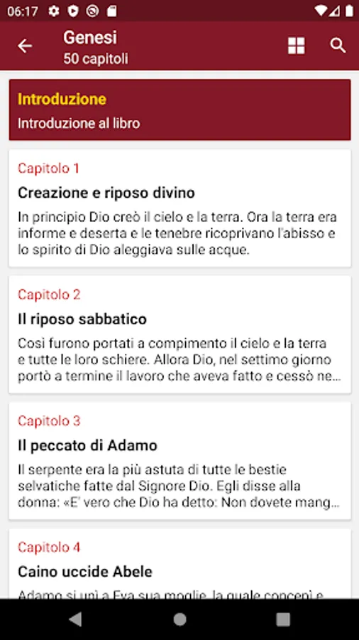 An easy and simple menu makes immediately available to you which books of the Scriptures you want to read. You can see a preview of every chapter and also its first line. This will reduce your searching and scrolling time.