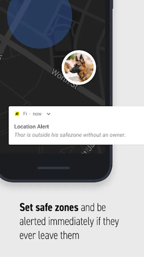 Paired with a Fi collar, the Fi app brings you even closer to your dog. View your dog's location and activity levels on the app, and be alerted if they ever escape from a designated safe area. The smartest pet parents choose Fi.