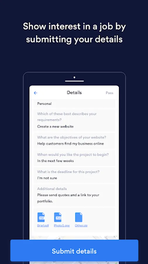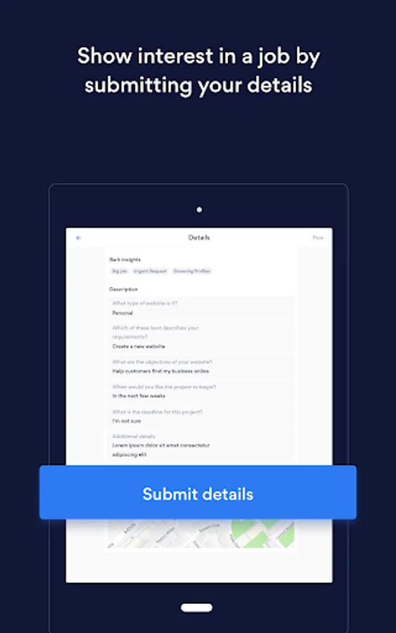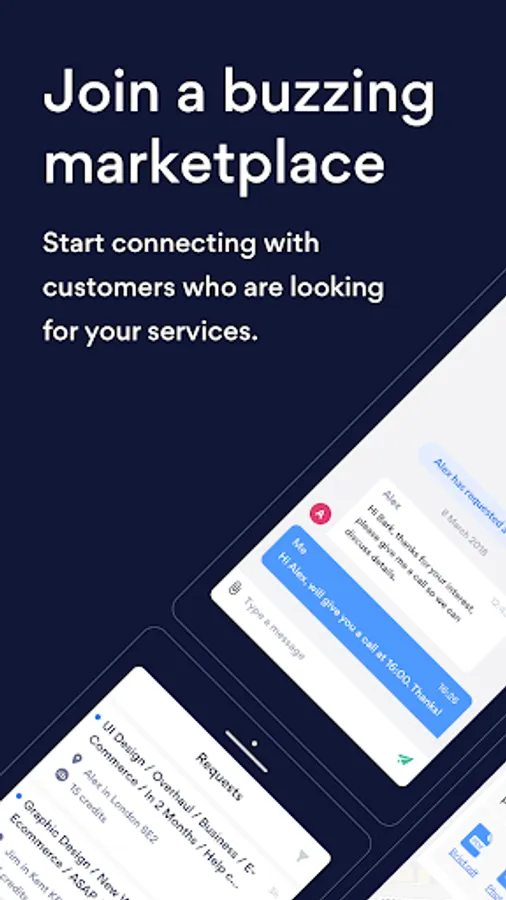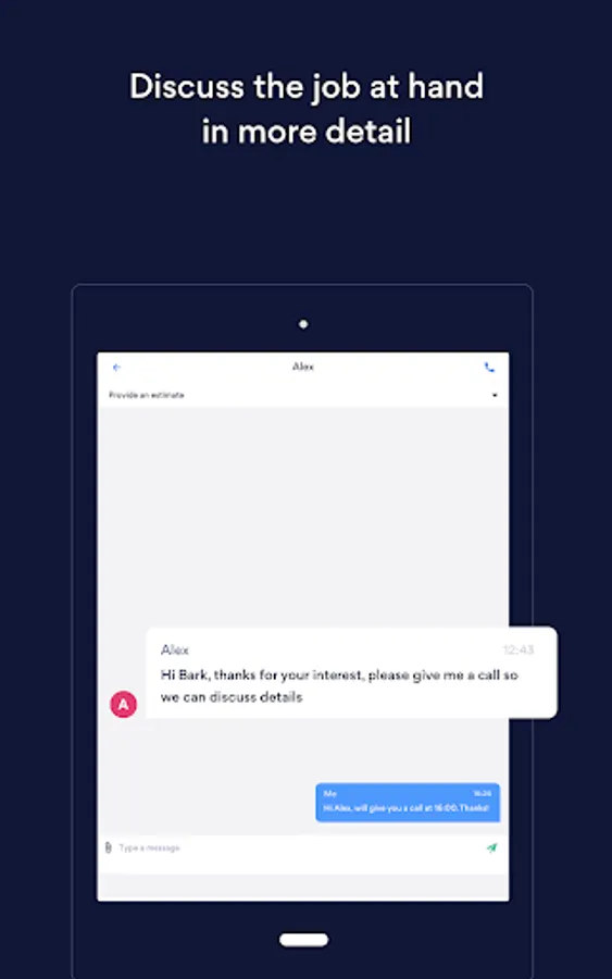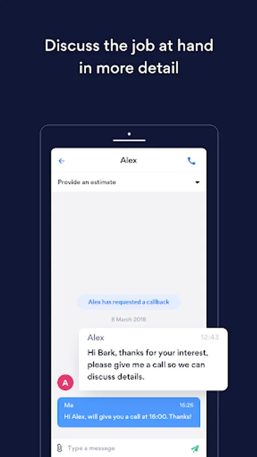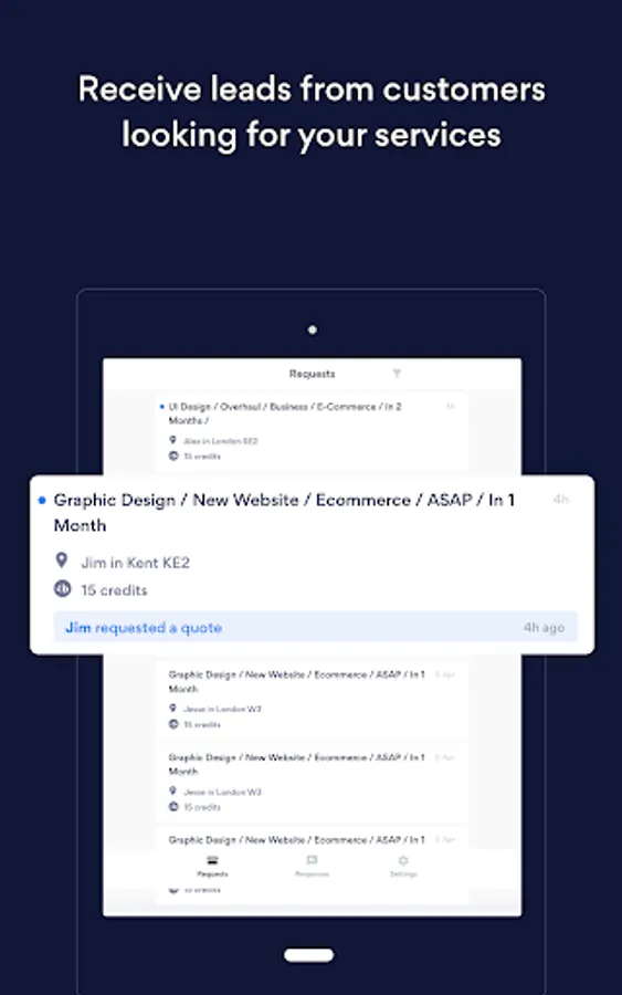 Use this app to receive customer requests wherever you are. When you see a job you’d like to pitch for, introduce yourself with a tailored message and call them directly – straight from your phone.