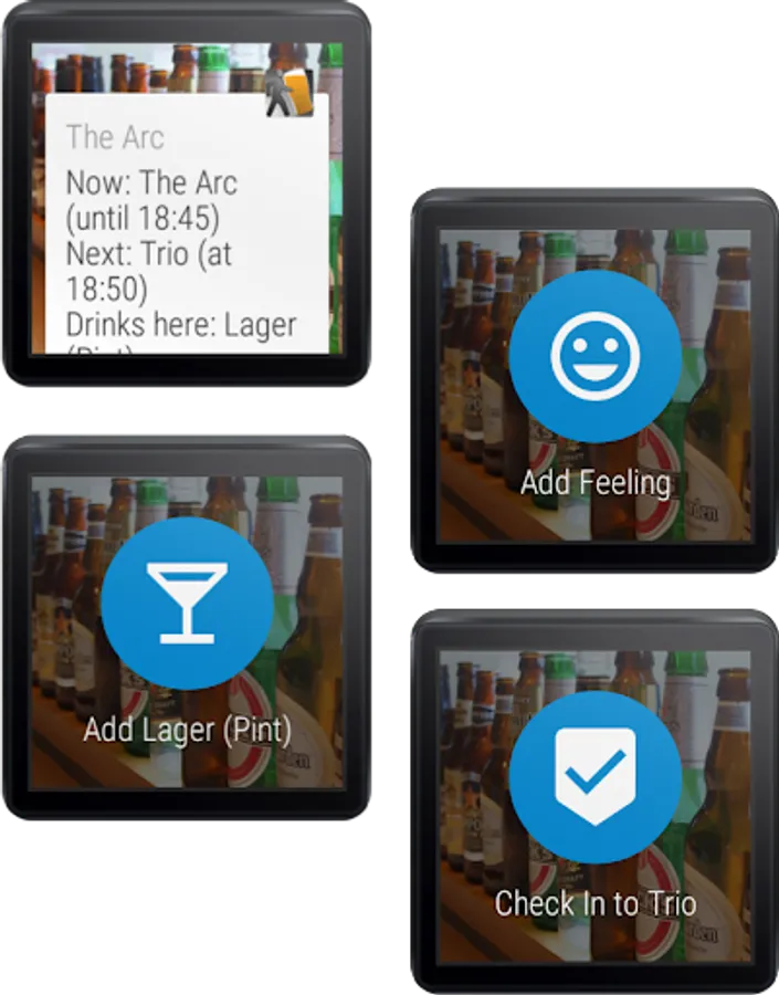 • Android Wear support for adding drinks, remarks and feelings and for checking-in.