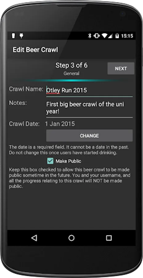 • View old crawls stored on your phone to remind you of the (hopefully) good memories (in case you can’t remember them for some reason!)