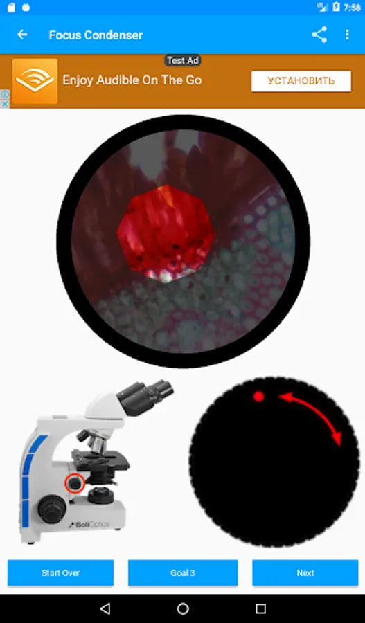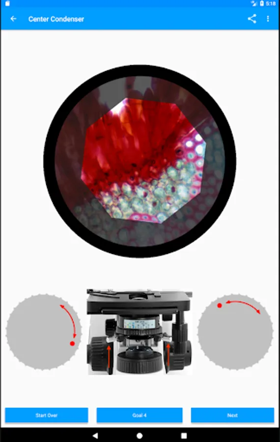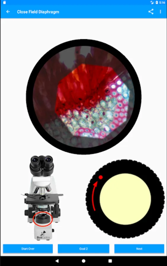 Learn how to set Koehler illumination on any microscope. Teach yourself, or teach others. The app simulates your microscope's controls and the images generated at the eyepieces, acting as a virtual microscope. The locations of the controls on your microscope stand are shown, and the correct way to use them is explained. Their effect on the image at the eyepieces is demonstrated.