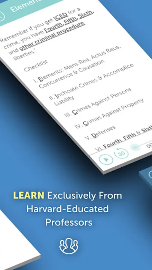 With on-demand audio lectures by notable Harvard Law School-educated professors, BarMax helps you learn on-the-go (no Internet required) and at your pace, so you can ditch the classroom, and make bar prep fit your schedule.