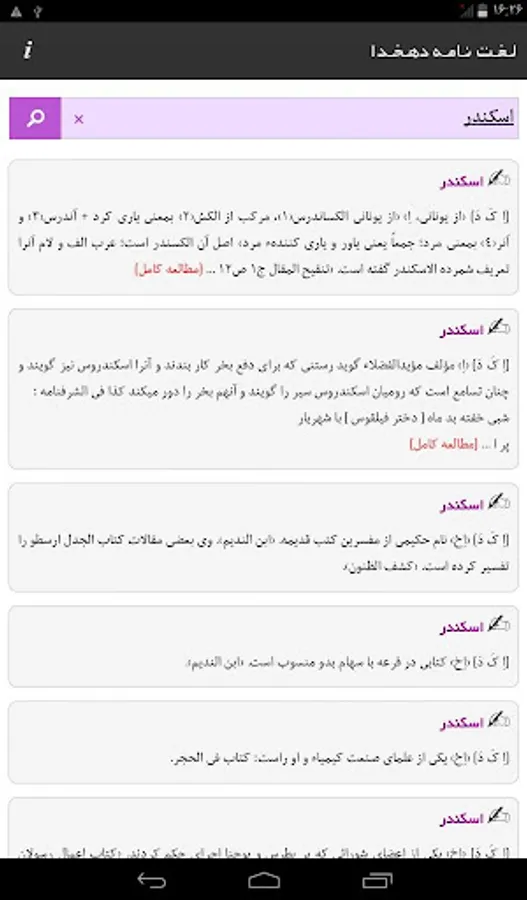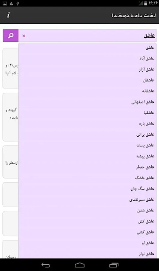 Software dictionaries Dehkhoda Ali Akbar Dehkhoda valuable treasure in the context of Android devices offers. This app contains all volumes published more than 30 volumes of culture Dhkhdast.