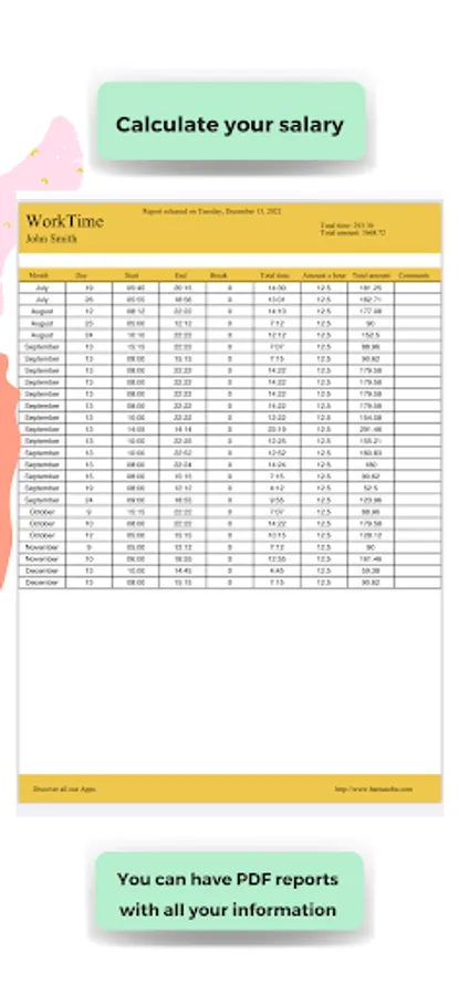 ► Generates a PDF with all the monthly information with the punch in punch out.