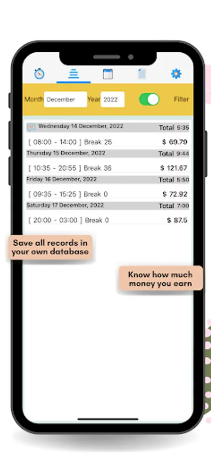Work Time is a recommended way to have under control the hours worked each day, and know the salary at the end of the month or a specific period. Track your time!