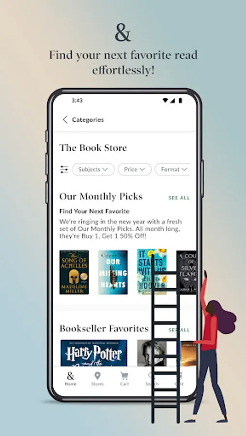 The newly redesigned and redeveloped Barnes & Noble app is the ideal companion for book lovers who want quick and easy access to the world of books. Search, browse and shop our massive selection of books, eBooks, audiobooks, NOOK eReaders & tablets, toys, games, home items, gifts and much more. Ship your items directly to your door, or use our store locator to find the nearest Barnes & Noble bookstore to pick up your order on your own schedule or skip the line in the Cafés with mobile ordering.