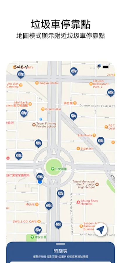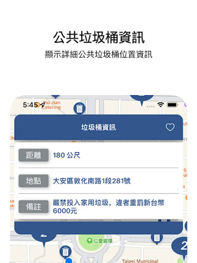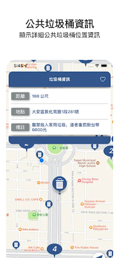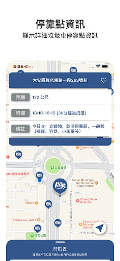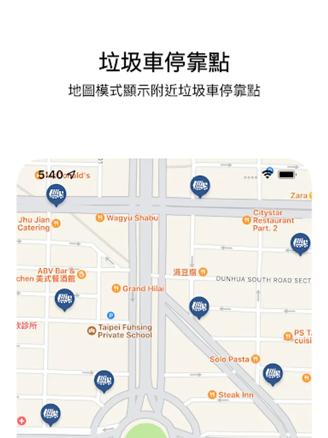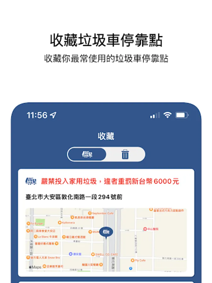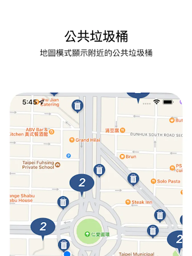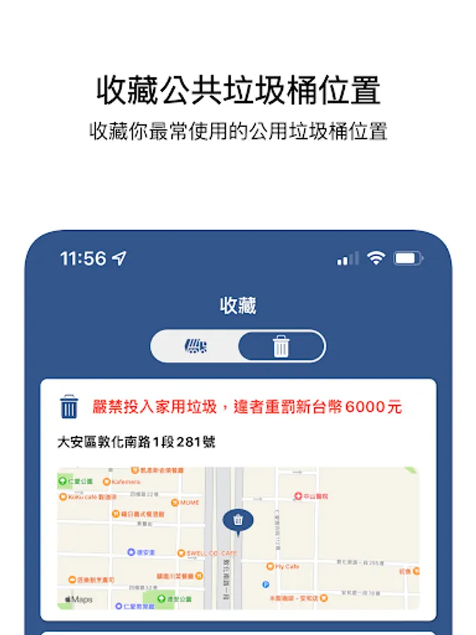 Taipei Dump Garbage is an integrated app based on maps, combined with the time and location of garbage trucks and the location of pedestrian trash cans.