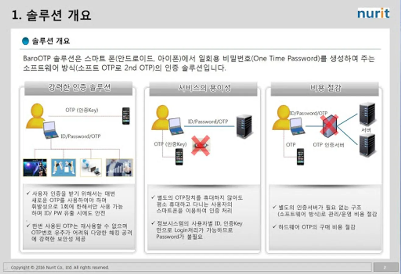 BaroOTP solution is a software method (soft OTP, 2nd OTP) authentication solution that creates a One Time Password on a smart phone (Android, iPhone).